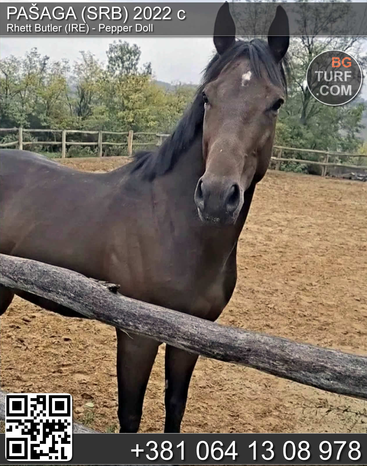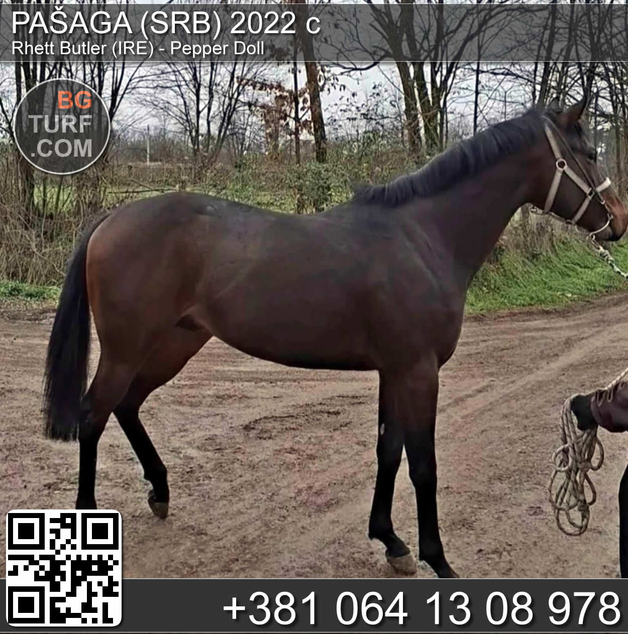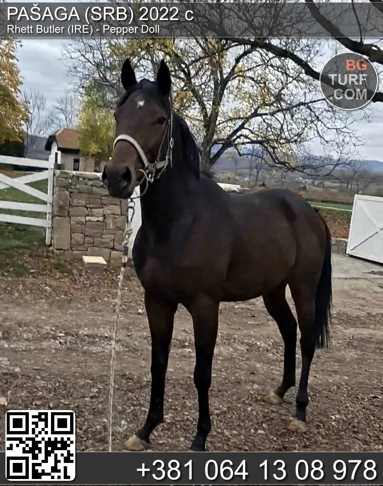 Andaluzijsko žensko ždrebe, P.R.E.crne boje, visoko 142 cm, staro 7 meseci. Otac visina grebena 177cm, majka visina grebena 174. Oba roditelja uvezena iz Španije, samoionskog porekla. Ždrebe, kao i oba roditelja nalaze se u Carevcu kod Pozarevca, Braničevski region..