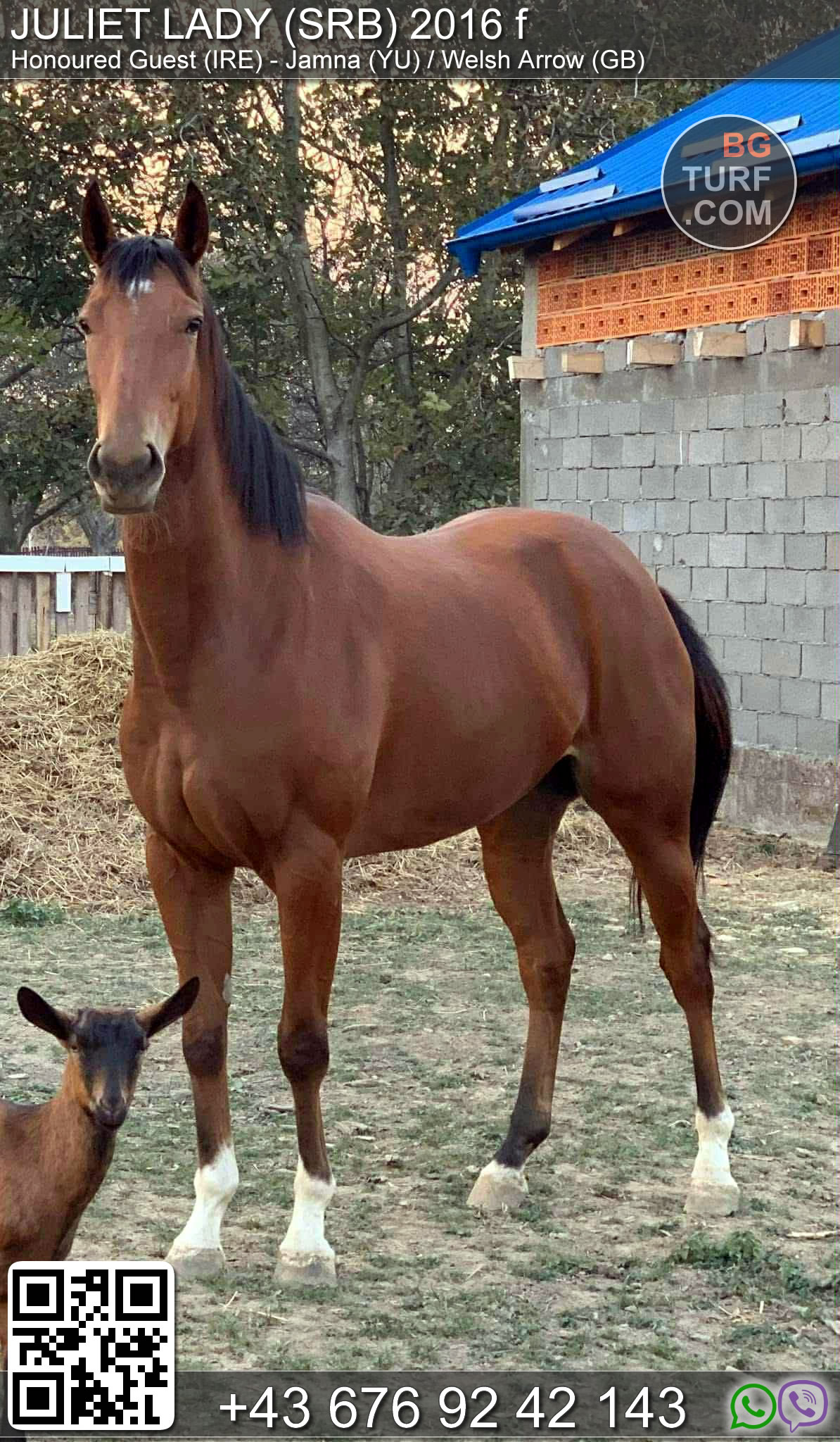 ćerka čuvenog pastuva Lord of England-a. Zdrava, u treningu na šabačkom hipodromu. Cena: 2,000€.