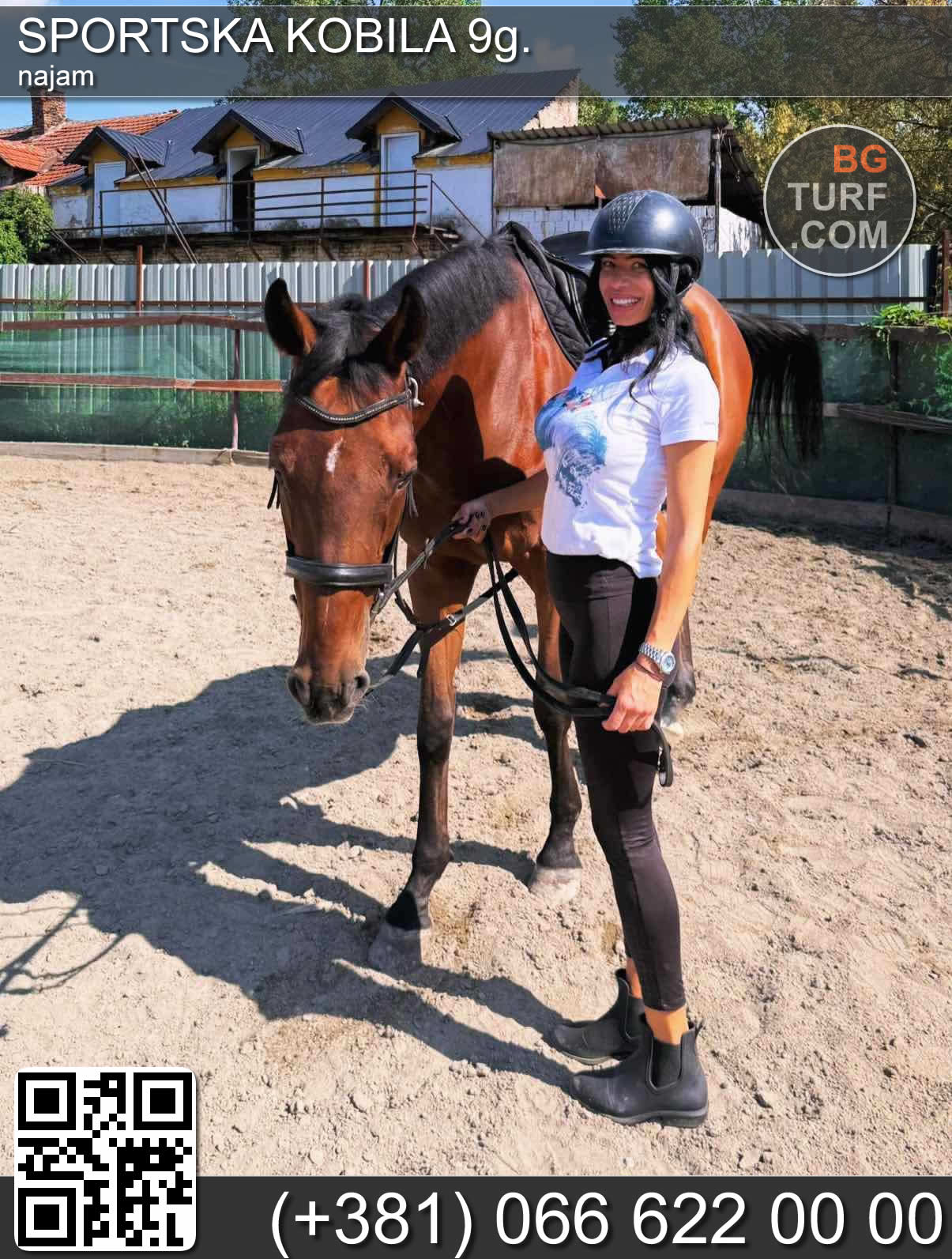 Kobila i ždrebe oboje čisti englezi. Kobila je pogodna za terensko jahanje, već se jaše 3 godine na terenskom. Za početnike odlična. Grlo se nalazi u Valjevu.