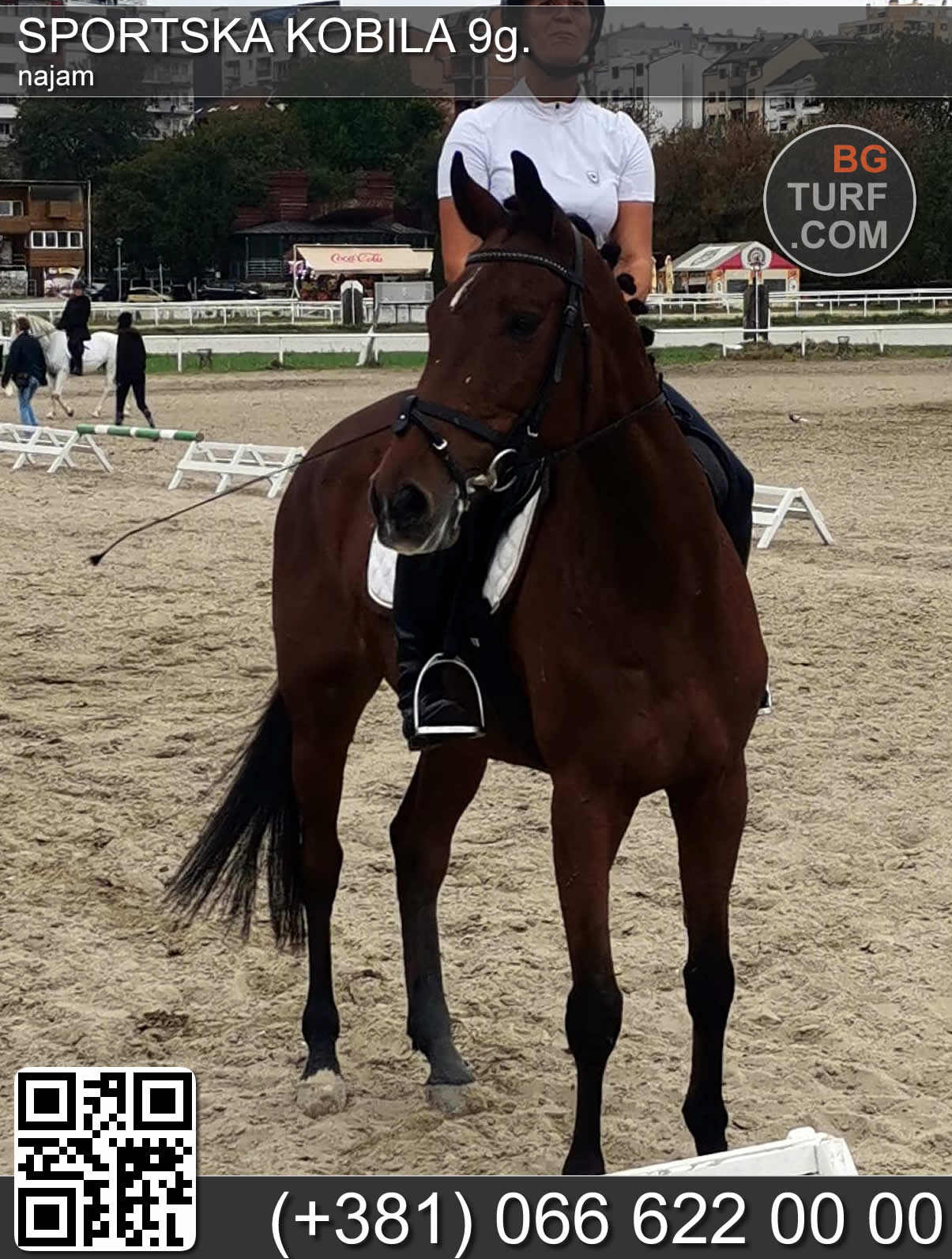 Na prodaju mađarski sportski konj kobila 2009g. Otac Leonce čistokrvni holštajner, majka engleska polukrvna. Kobila je potpuno zdrava, nalazi se kod odgajivača prvog vlasnika. Ima mađarski pedigre. Trenirana za dresurno i preponsko jahanje do visine 1m. Visina grebena 174cm štapom. Šaljem video. Cena: 4,200€.