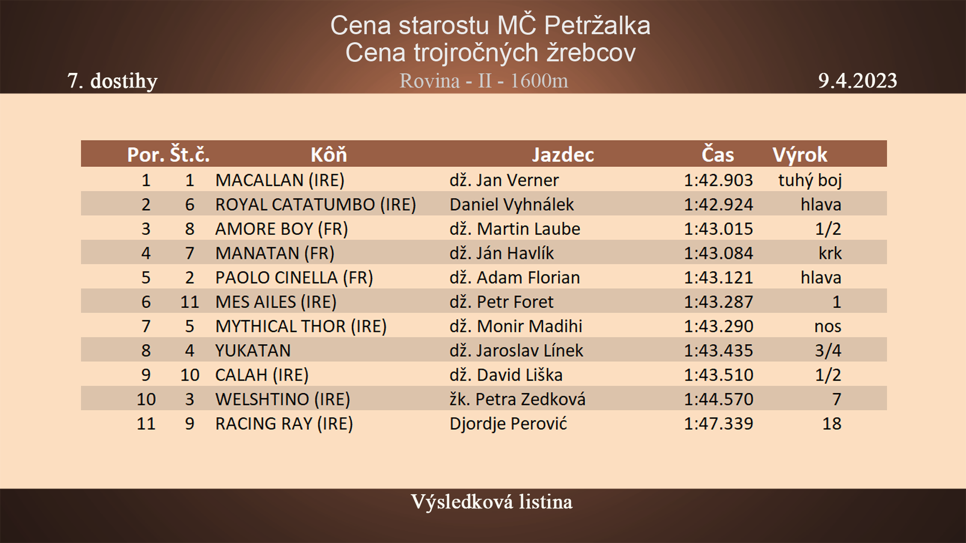 "Cena starostu MČ Petržalka" K-II 3g.m. 1600m €4,000